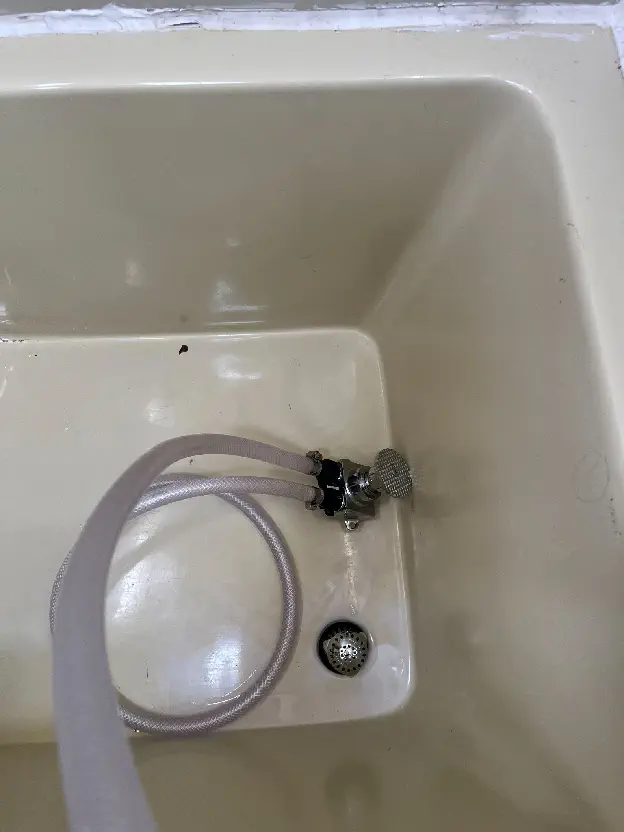 For power reduction, my first thought was the shower heads with heater elements built into them that I had seen all over Puerto Rico. These compact units plug into a 110v socket above the shower head, and as water flows through it is heated. I looked all over for one that had a low enough wattage draw - even with the 3K inverter it was hard to find one that would fit into my power budget. Eventually I settled on a Brazilian-made unit of questionable quality to perform my test. But what about water volume? I got to thinking about navy showers - the most obvious solution for minimising water consumption. But I hate fumbling for a switch on the showerhead with soap in my eyes, and more importantly, I wanted “water off” to be the default, so guests are less inclined to burn through my entire water tank in a single sitting. A bit of searching turned up a foot-controlled valve used at hospital hand wash stations. Perfect!