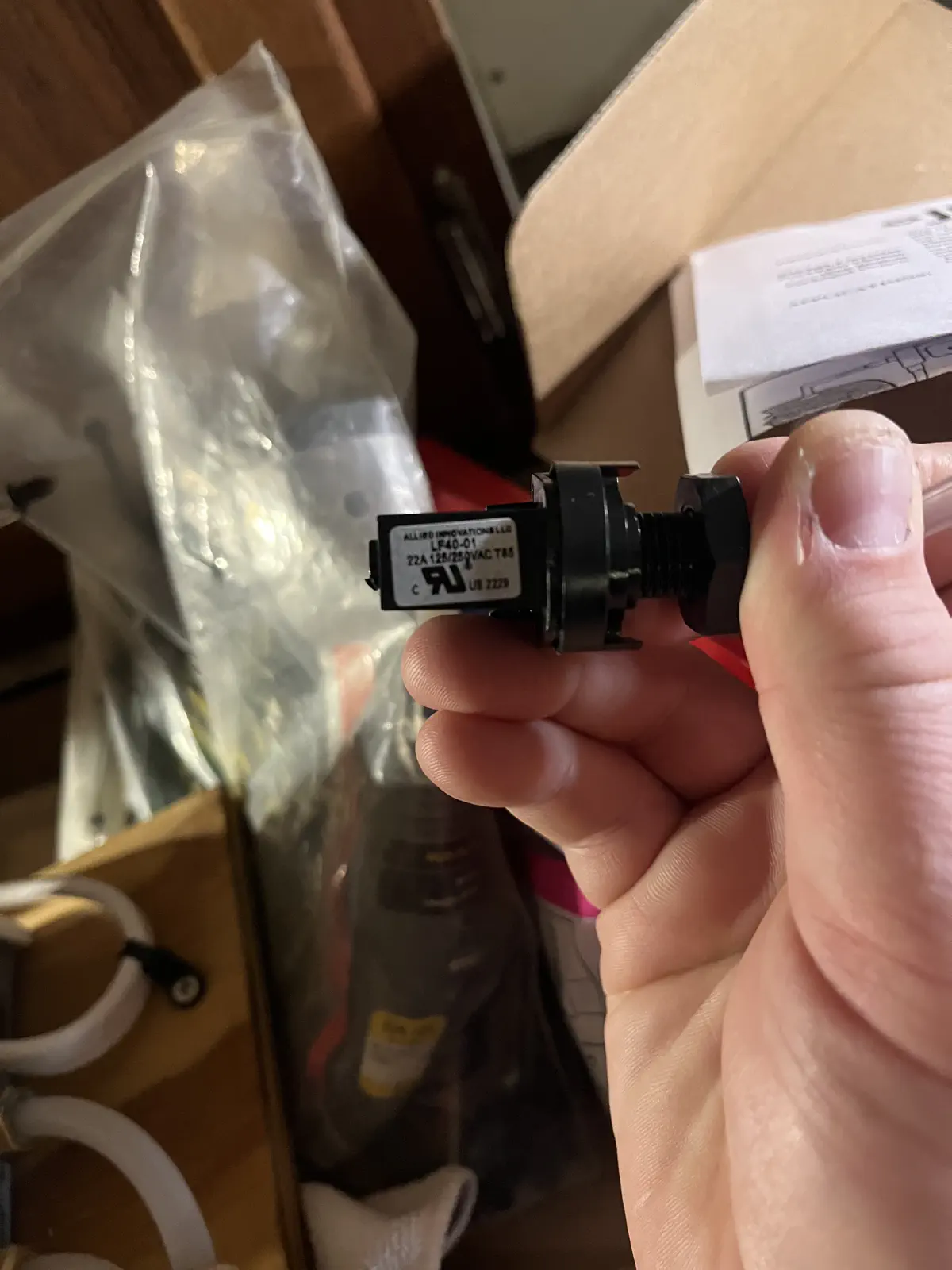 Most garbage disposal buttons are latching switches. This means “step once for on, again for off” which is exactly what I didn’t want. I did find a supplier, but they only sold batches of 1000 switches - a few more than I wanted. Eventually I found the exact part number and did find a one-off seller on eBay (for almost as much as the batch of 1000) and was good to go. Finally found one that was non-latching!
