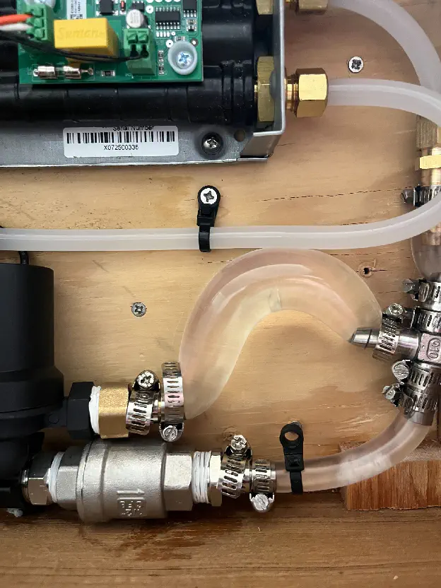 The initial hose I purchased was garbage. This was an Amazon buy rated double my house pressure and 300β. My first test run proved different results: This is fine.I replaced all the lines with reinforced PVC tubing (and was now able to use a reasonable number of clamps as well)